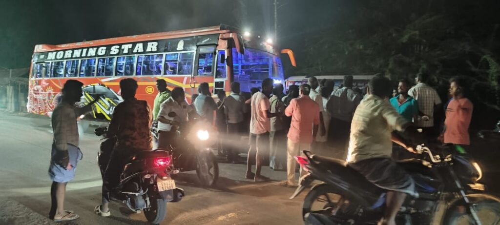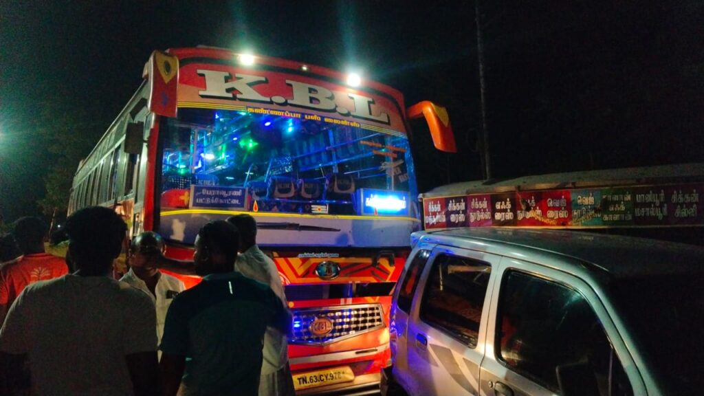 புதுக்கோட்டை மாவட்டம் அறந்தாங்கி பேருந்து நிலையத்தில் நின்று கொண்டிருந்த KBL தனியார் பேருந்தை கிடங்கிவயல் பகுதியை சேர்த்த ரகு என்ற இளைஞர் போதையில் பேருந்து நிலையத்திலிருந்து கட்டுமாவடி முக்கம் வழியாக ஓட்டிச் சென்று எல்என்புரம் பகுதியில் நின்று கொண்டிருந்த கார் மற்றும் சிக்கன் நூடுல்ஸ் கடை மீது மோதி வாகன விபத்து ஏற்படுத்தி உள்ளார்.